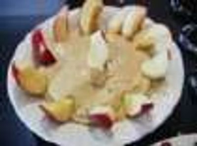 Place toffee mixture in a small bowl on larger platter and surround dip with sliced apples.